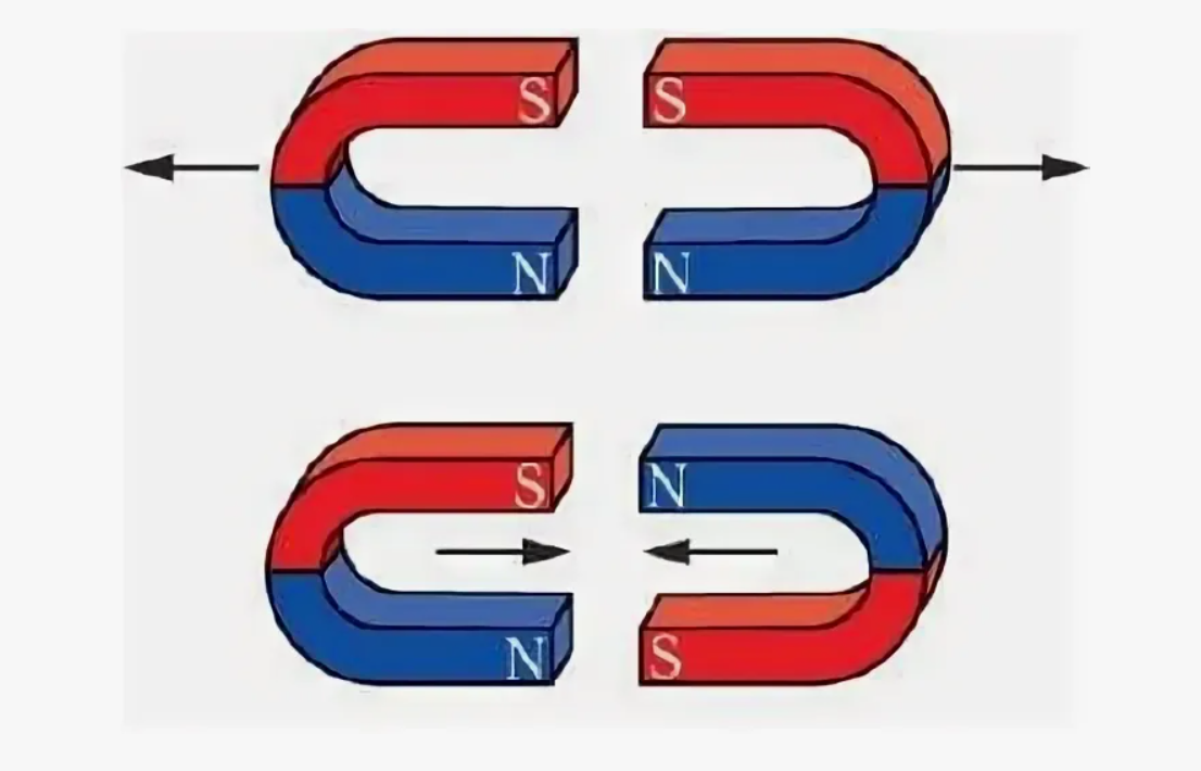 Магниты отталкиваются одноимёнными полюсами и притягиваются разноимёнными.