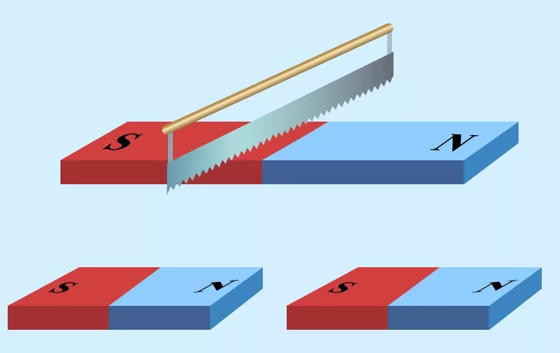 Другими словами, нельзя получить магнит с одним полюсом. Так, если взять полосовой магнит и разрезать его посередине, то получится два магнита с двумя полюсами (северным и южным) у каждого.