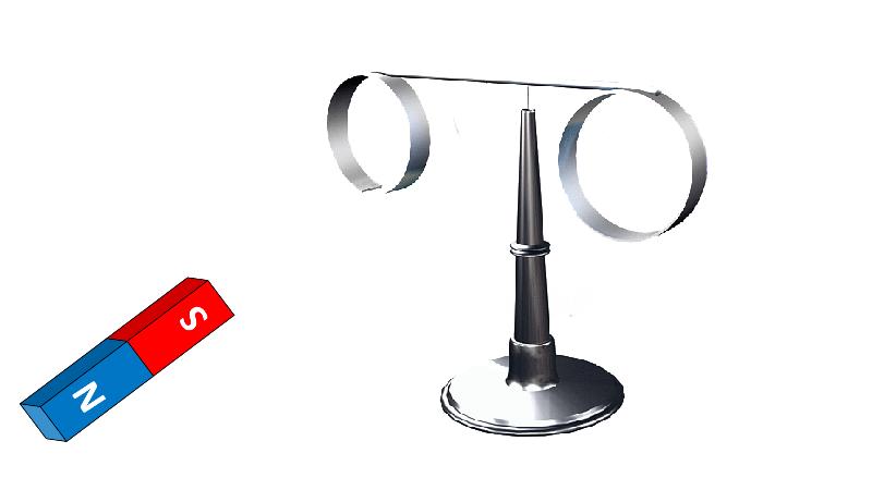 Прибор представляет собой узкую алюминиевую пластинку с алюминиевыми кольцами на концах. Одно кольцо сплошное, другое имеет разрез. Пластинка с кольцами помещена на стойку и может свободно вращаться вокруг вертикальной оси.