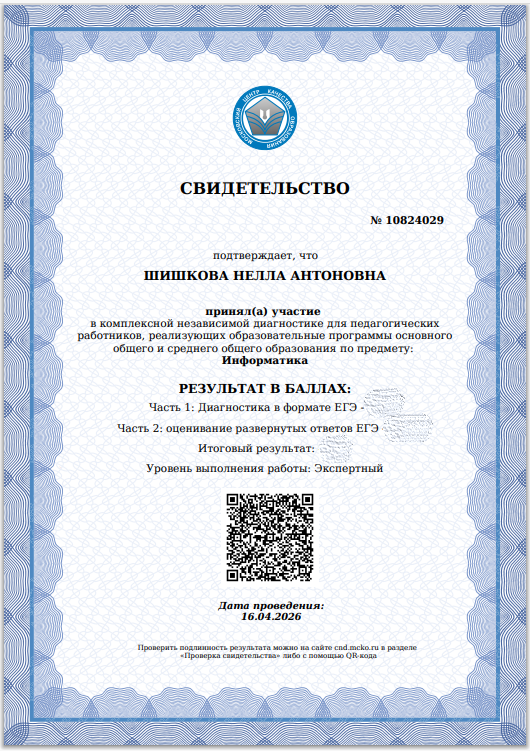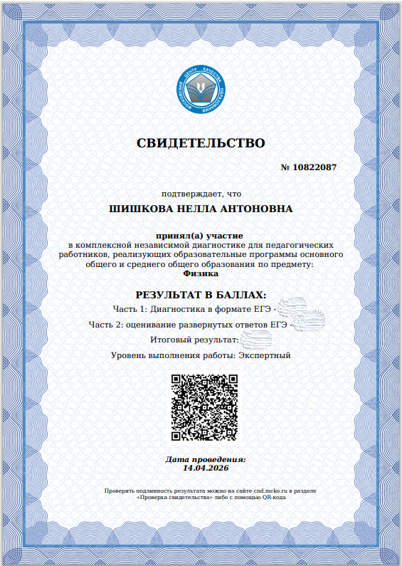 Шишкова Нелли Антоновна учитель физики и информатики высшей категории